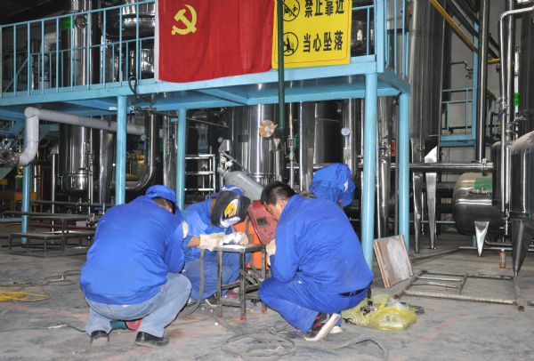 7月中旬,公司正式停機,公司領(lǐng)導(dǎo)、生產(chǎn)管理部、維修班及公司技術(shù)人員成立了技改小組,對車間廠房、設(shè)備設(shè)施及管線等進行施工安裝。為了保證項目進度,確保擴產(chǎn)改造工程順利進行,公司黨員充分發(fā)揮黨員先鋒模范作用,積極開展技術(shù)傳幫帶,自發(fā)組織設(shè)立了三個“黨員示范崗”。黨員領(lǐng)導(dǎo)干部帶頭工作在一線,帶領(lǐng)職工齊心協(xié)力攻克難題,不辭辛勞的加班加點工作。截至7月22日,提取車間廠房擴建、提取罐、濃縮罐等已安裝完成,部分管線也已完成更換,新增的管道正在進行安裝;配制灌裝車間的功能間擴建已完成,配制罐和純化水儲罐也已安裝完成,正在進行管線連接,空調(diào)系統(tǒng)的安裝也在同時進行。