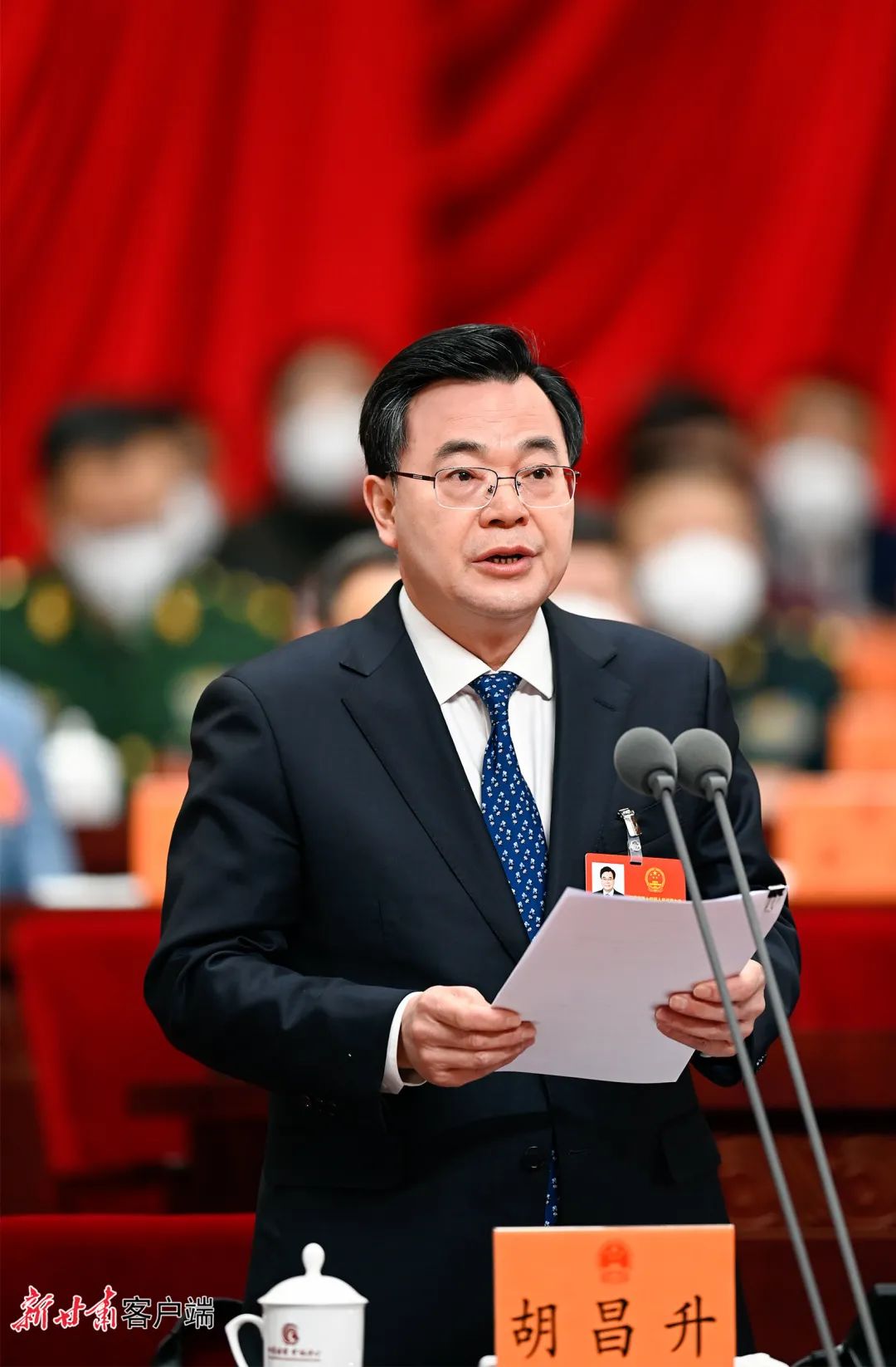 上午9時許,胡昌升宣布:甘肅省第十四屆人民代表大會第一次會議開幕!會場全體起立,高唱國歌。