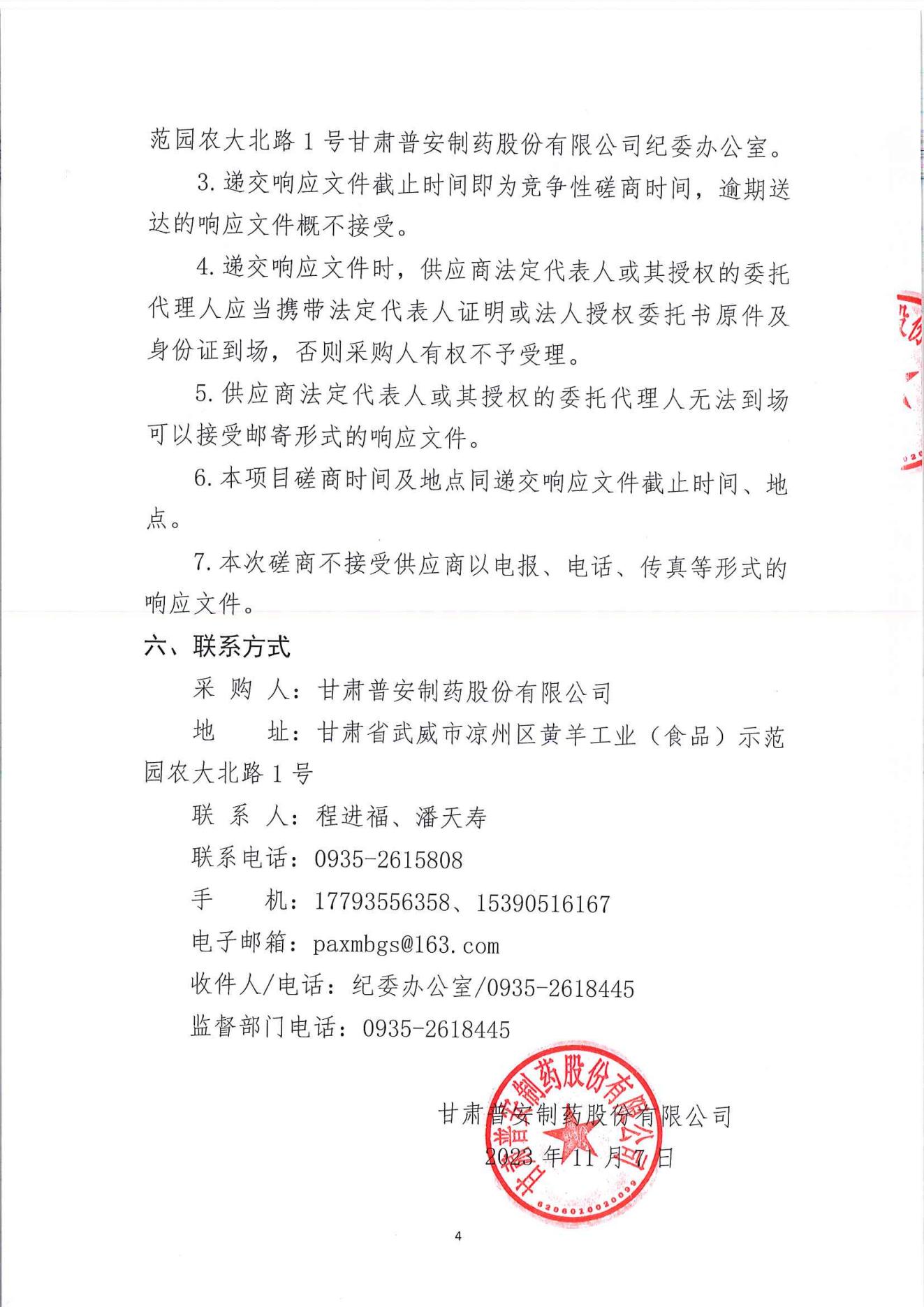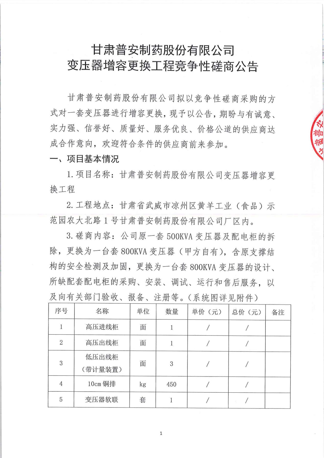 甘肅普安制藥股份有限公司變壓器增容更換工程競爭性磋商公告
