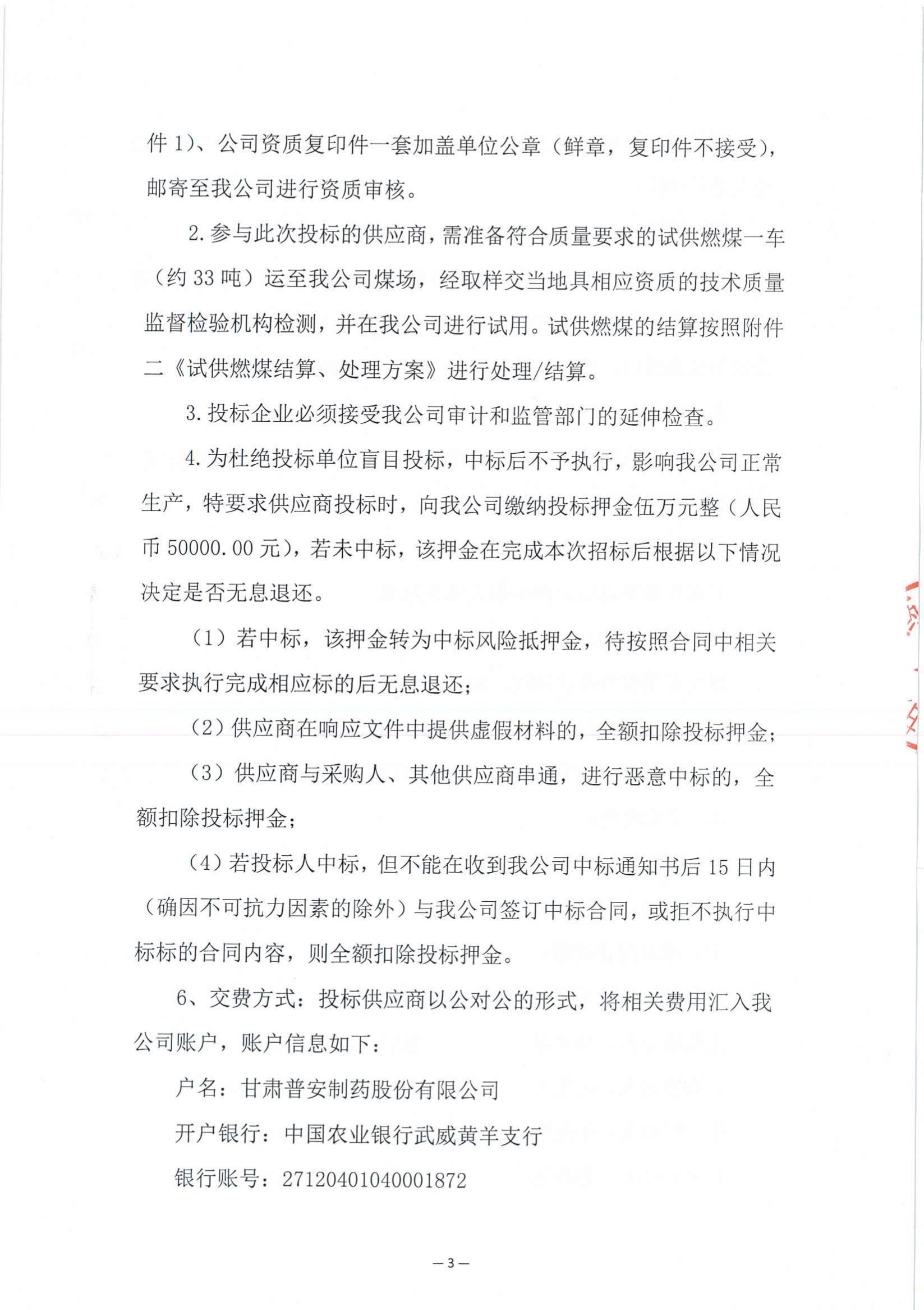 甘肅普安制藥股份有限公司2023年4月燃煤采購(gòu)競(jìng)爭(zhēng)性磋商公告
