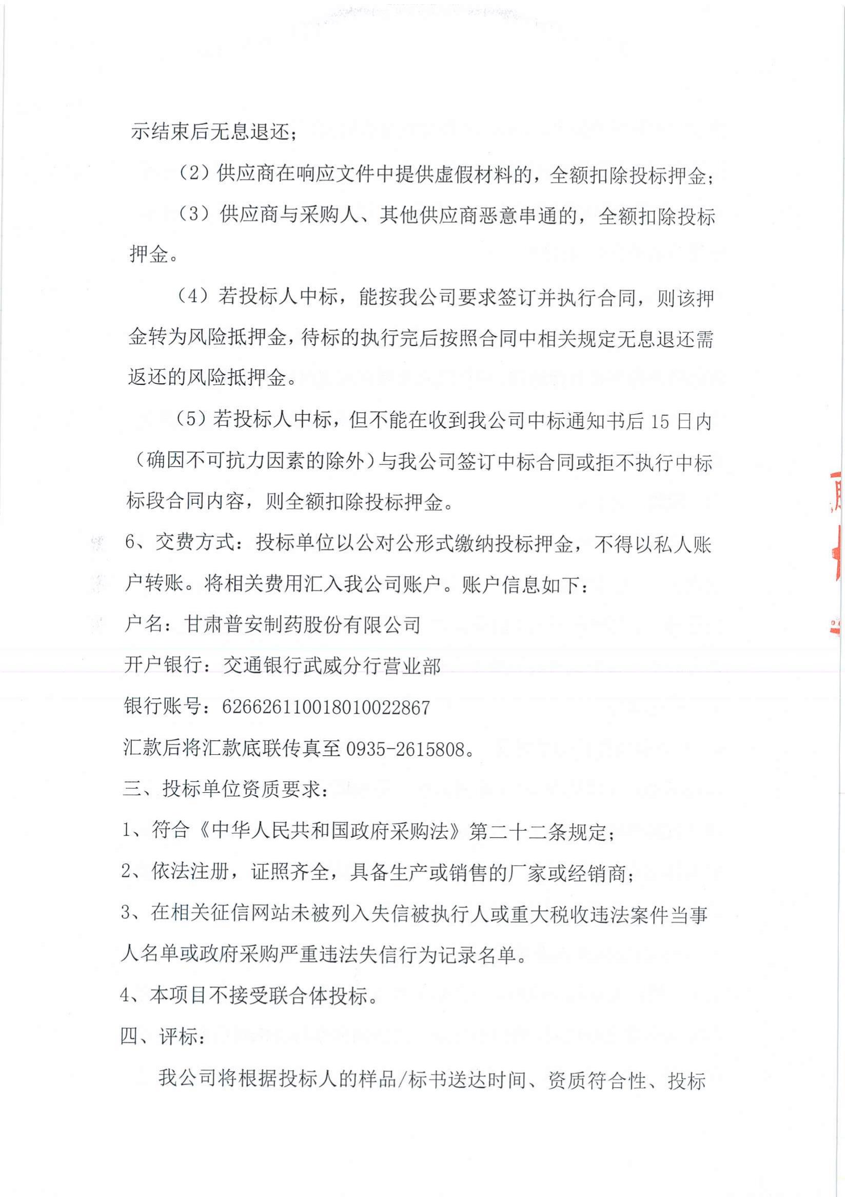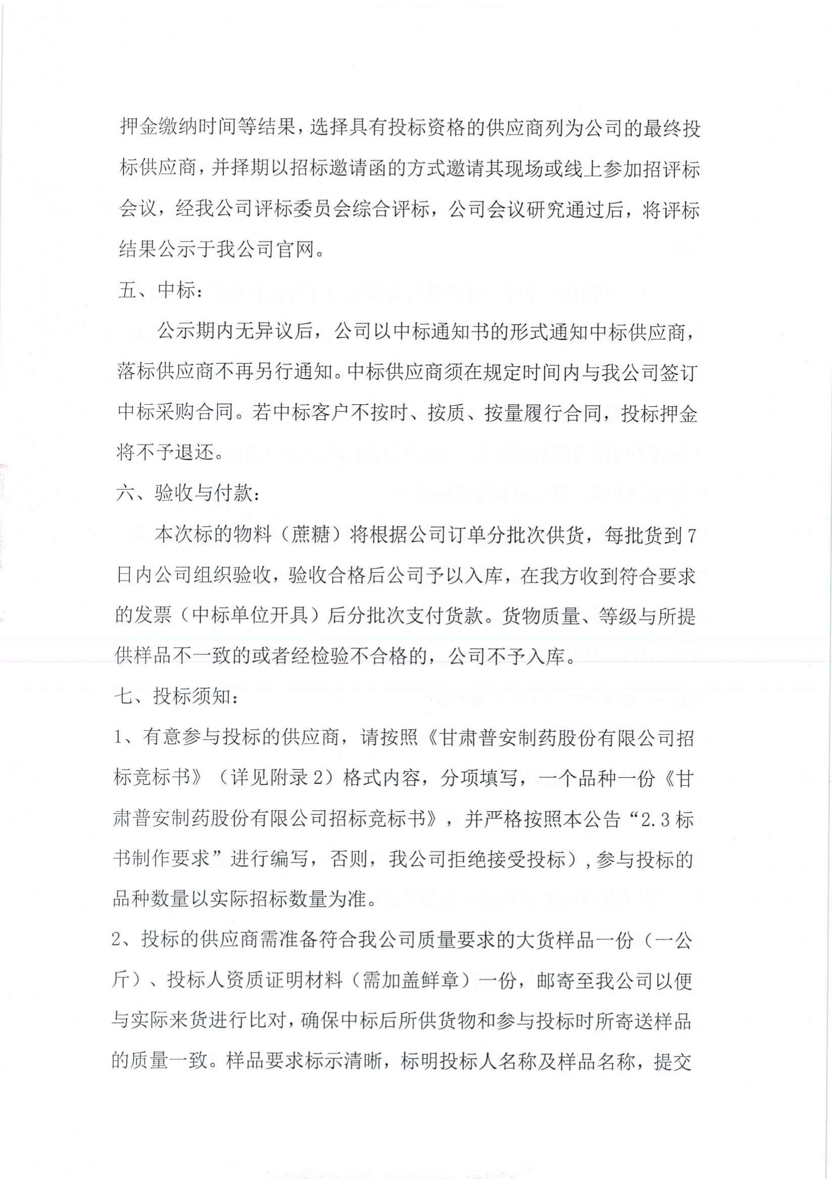 根據《甘肅普安制藥股份有限公司大宗物資招標釆購管理制度》 相關規定,對宣肺止嗽合劑生產所需物料(蔗糖)以公開征集、競爭性磋商的方式進行招標采購,歡迎全國各地符合資格條件的供應商踴躍參加。
