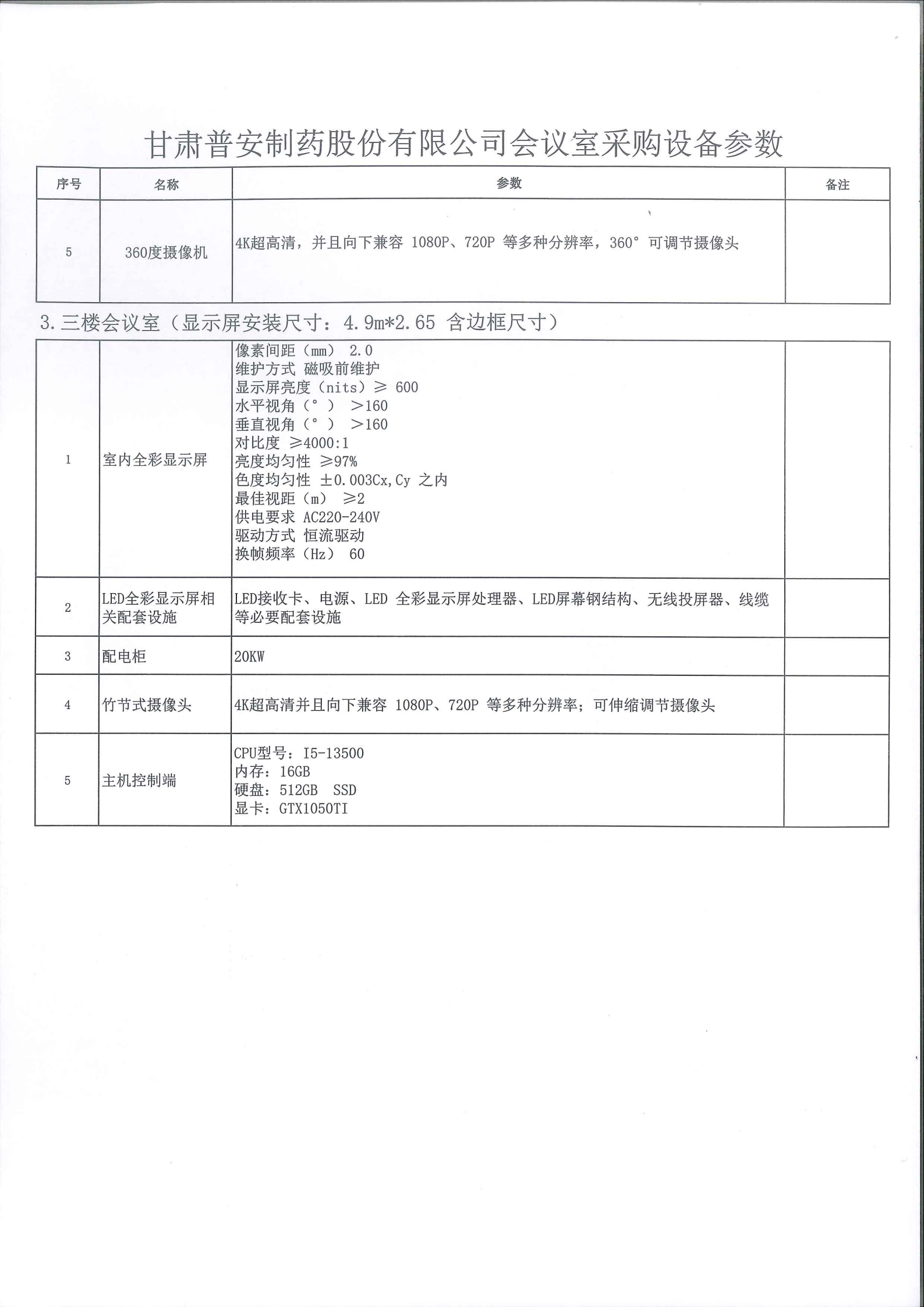 甘肅普安制藥股份有限公司會(huì)議室設(shè)備升級(jí)改造報(bào)價(jià)邀請(qǐng)公告