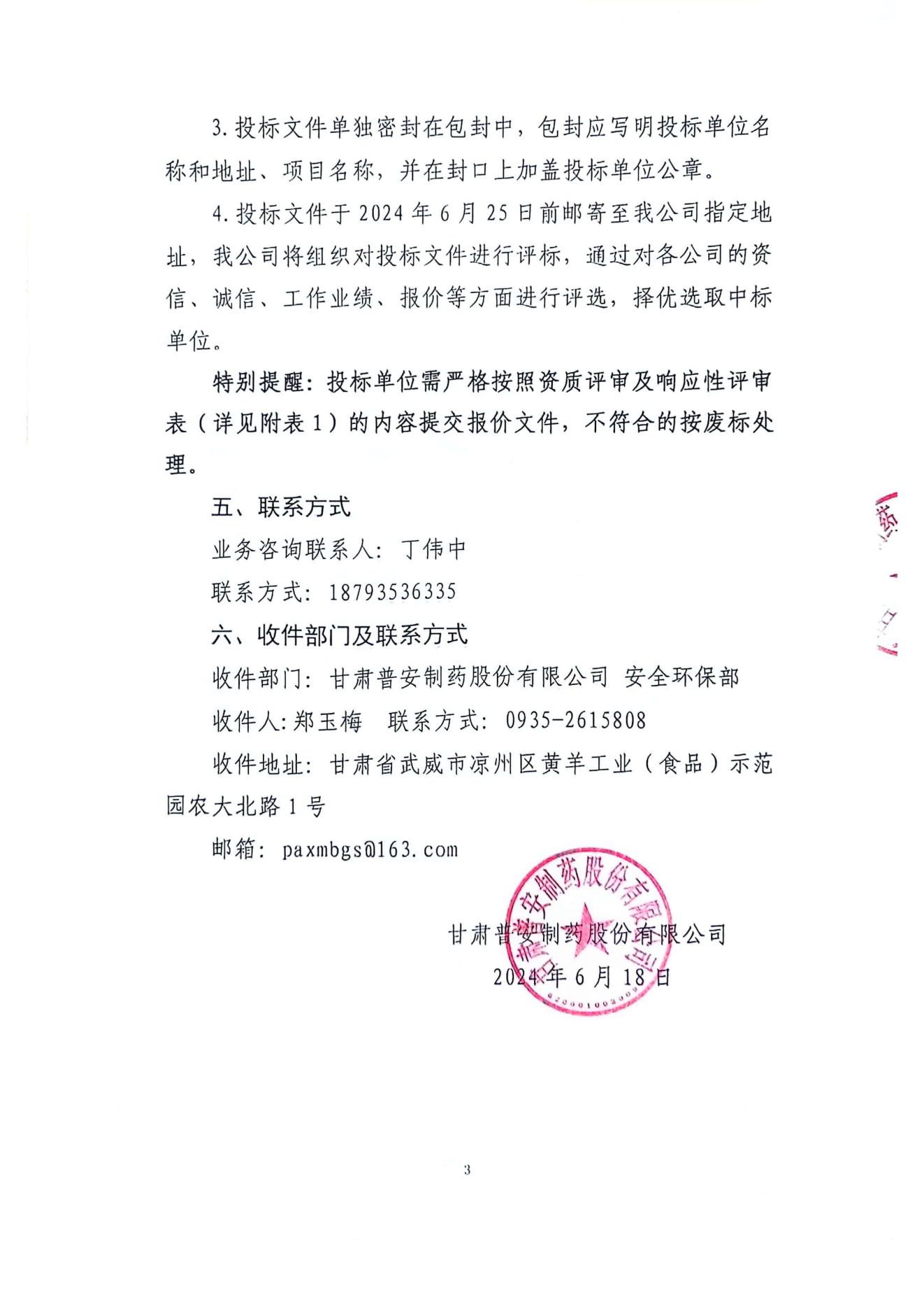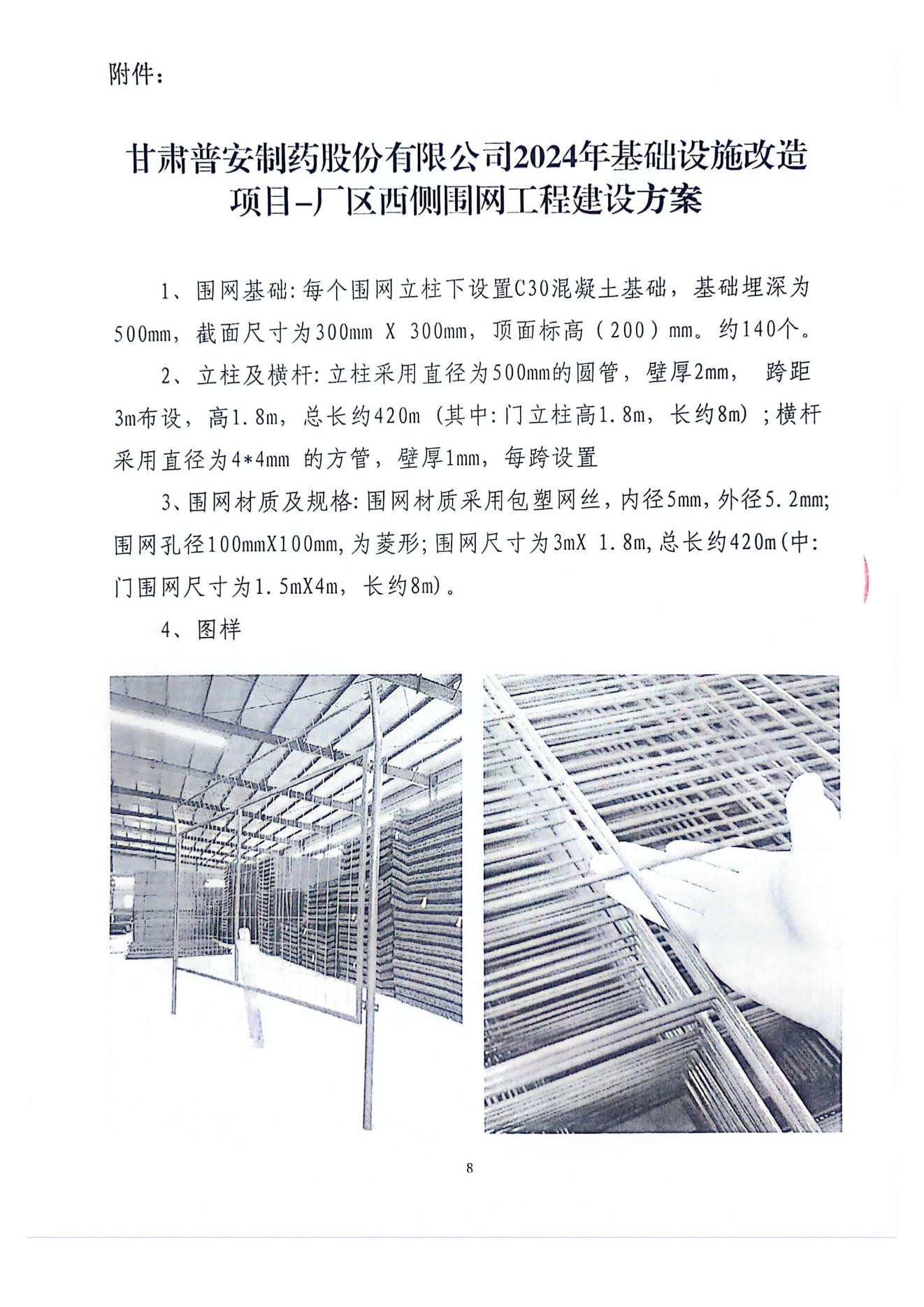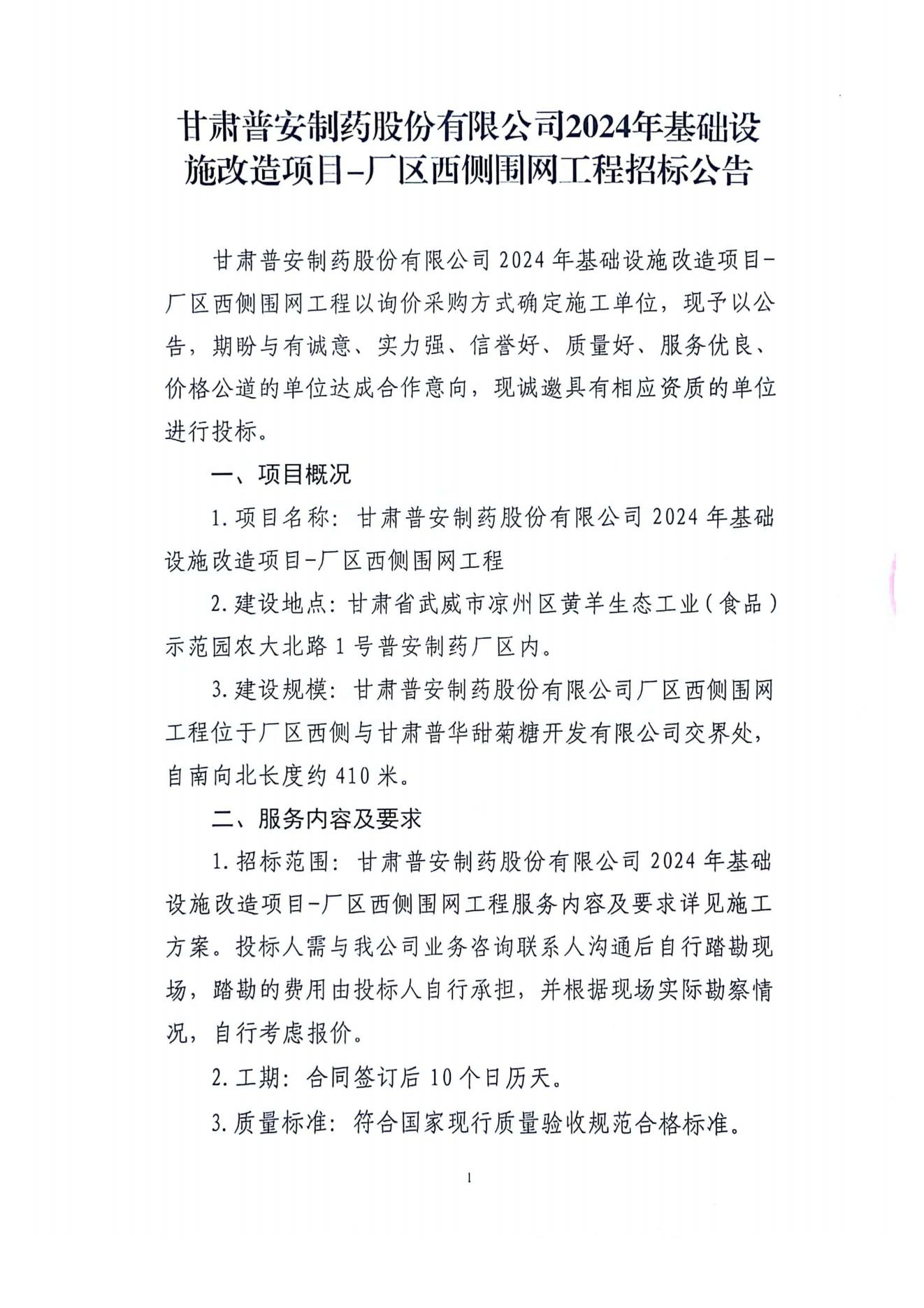 甘肅普安制藥股份有限公司2024年基礎(chǔ)設(shè)施改造項目-廠區(qū)西側(cè)圍網(wǎng)工程招標(biāo)公告